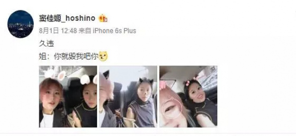 8月1日竇佳嫄也在微博發出一組姐妹合照,平時高冷的童童,碰上妹妹一秒卸掉高冷的偶像包袱。
