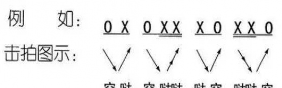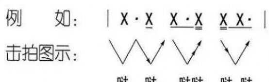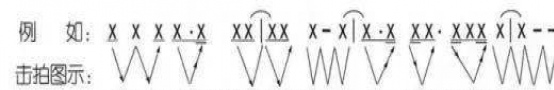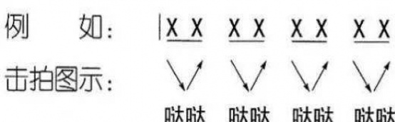 所謂的擊拍也是打拍子,經常通過手或者腳來配合一下(↓為前半拍)一上(↑為後半拍)的動作就視為一拍。