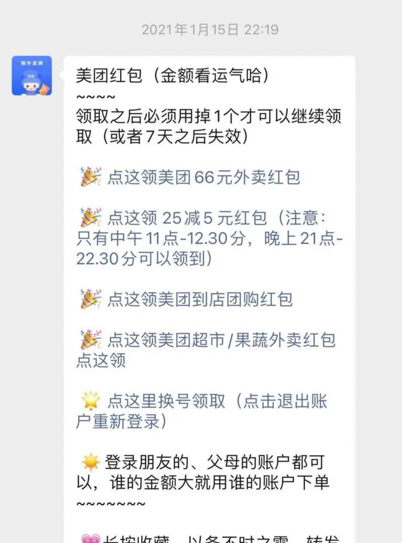 你一定還不清楚現在外賣每天都有紅包可以領,根本不需要各個群裏求人點紅包鏈接!我現在每天在這個公眾號領漏洞紅包,每單外賣都只要幾塊錢。
