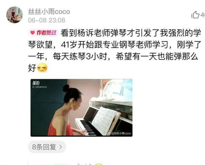 還有粉絲看了他的視頻,四十歲重新燃起學琴的熱情。在他看來,學琴不是為了考級或者賣弄,而是借助音樂安放心靈,所以四十歲學琴也不晚。