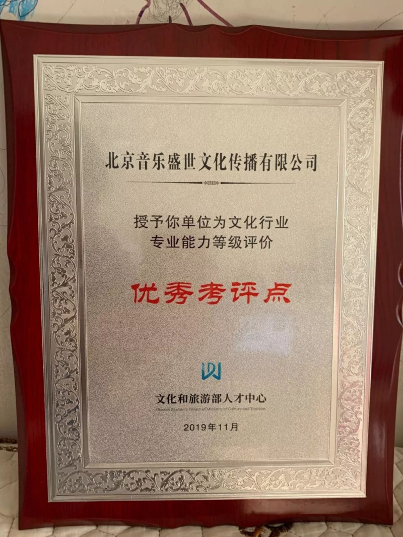 熱烈祝賀吉他中國—魔菇音樂主管單位:北京音樂盛世文化傳播有限公司榮獲由文化和旅遊部人才中心頒發的“2019年文化行業專業能力等級評價”一優秀考評點 榮譽!文化和旅遊部人才中心李立中主任為獲獎代表頒發獎牌進行表彰!這也是魔菇音樂的榮耀