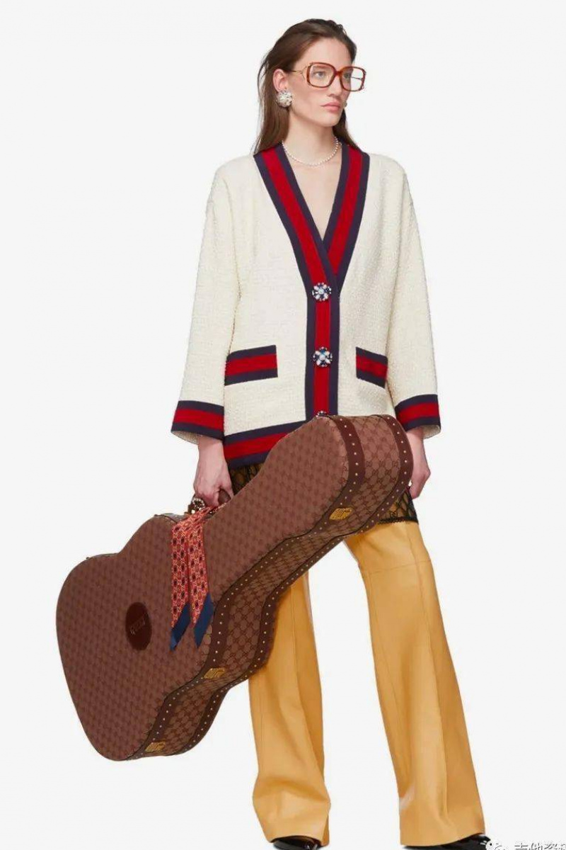 上一次看到 Gucci 吉他琴盒是在 Gucci 2020 Cruise 系列型錄中出現,當時便引起熱議,確實表達了 Gucci 創意總監 Alessandro Michele 對旅行和音樂的熱愛以及它們對時尚的深層含義(見下)。