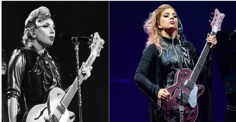 作為主演之一Lady Gaga 也是Gretsch 的顏粉兒。在16 年發行了村味兒專輯《Joanne 》之後,老鱉在台上演出的時候都喜歡在肩上掛把Gretsch ,以配合專輯塑造的人設。有一把70 年代左右生產的元年大白鷹,還有一把玫瑰色的Falcon ,這兩把琴在幾個MV 和各個表演現場中都出現過,出鏡率非常高。無論你喜不喜歡老鱉,你都得承認Gretsch 確實很上鏡。至於她彈得好不好就是另外一回事了。