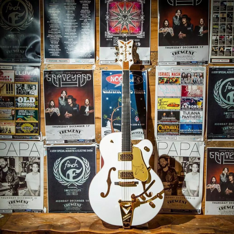 沒有比Gretsch 更適合在舞台上耍酷的吉他。現在這句話還得再加上一句:沒有比Gretsch更適合在大熒幕上凹造型的吉他。去年的大熱電影《A Star is Born》(一個明星的誕生)中就出現了一把搶鏡的Gretsch。在電影的一個片段裏,Bradley Cooper手裏拿了一把定制的白色G5022CWFE Rancher Falcon。