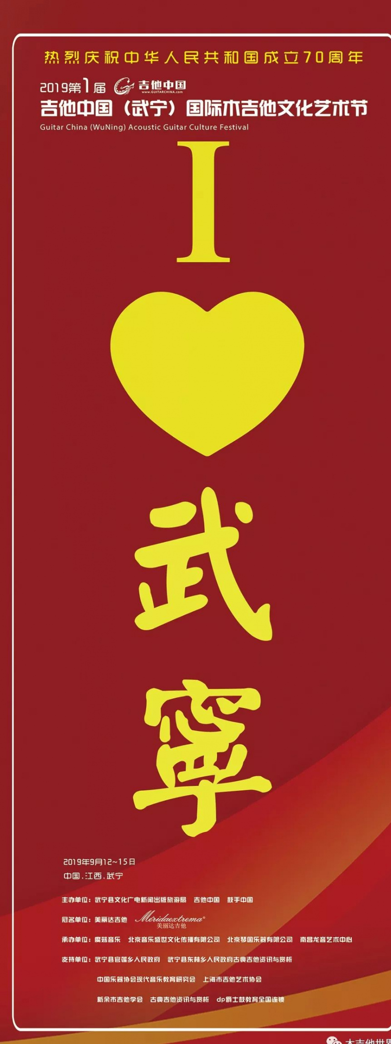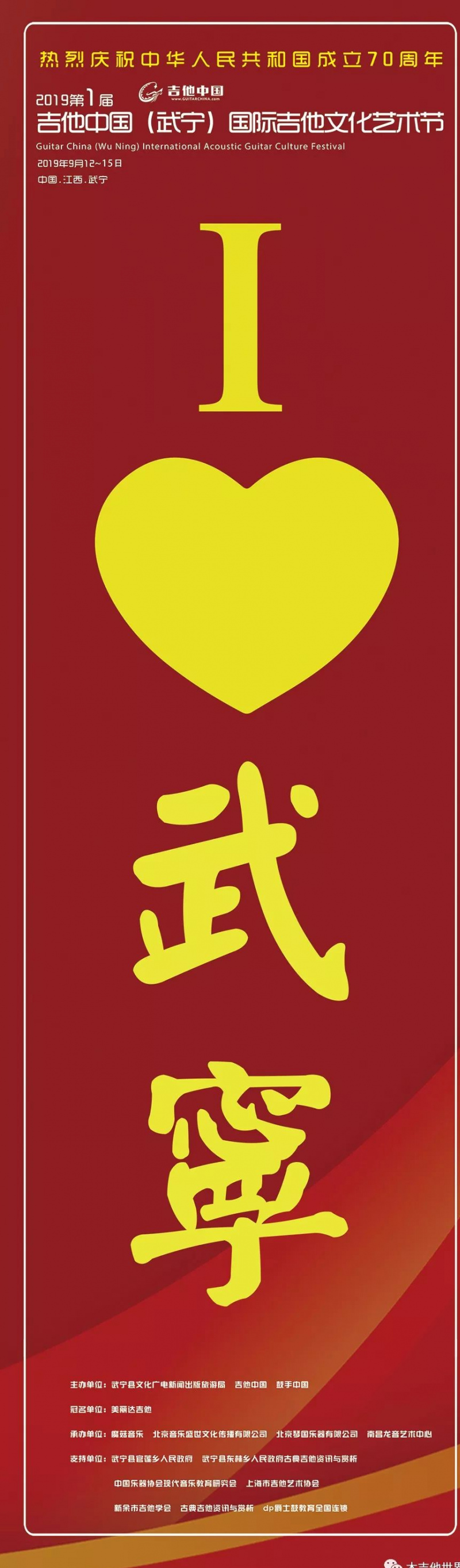 2019第1屆吉他中國(武寧)國際木吉他文化藝術節將於中秋(9月12日~15日)在江西武寧盛大舉行!本屆藝術節由武寧縣文化廣電新聞出版旅遊局和吉他中國聯合主辦,美麗達吉他冠名贊助!這是吉他中國第一個以木吉他為主題的綜合類藝術節,將集合表演、比賽、大師班、制作交流、吉他工廠參觀等一系列主題活動