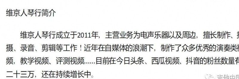 吉他中國新媒體中心(原吉他中國評測部)是吉他中國旗下專業的吉他類樂器設備的音視頻評測機構,依托吉他中國多年積累的信譽,客觀、公正的為客戶提供樂器產品介紹、評測等資訊,全方位展示樂器設備的性能與特點,使得用戶可以通過音視頻先行“體驗”心儀的樂器和各類設備。吉他中國新媒體中心2020除保留原有評測業務外,重點提升為“客戶產品”的策劃、宣發、投放等工作內容上,即“客戶”提供視頻素材和內容,GC新媒體整合、加工,在吉他中國各大平台有效投放,為客戶品牌推廣,做最有效地有的放矢。目前吉他中國自有優勢自媒體平台包括:微信公眾號、抖音、頭條、微博,尤其微信公眾號,垂直用戶精確、粘度性高!也是品牌的根本,同時加之吉他中國近20年的文化底蘊沉澱與價值觀體現,GC新媒體也將秉承:推薦好產品,不浮誇,不惡意導購,這樣才能對雙方的品牌都有效的提升。