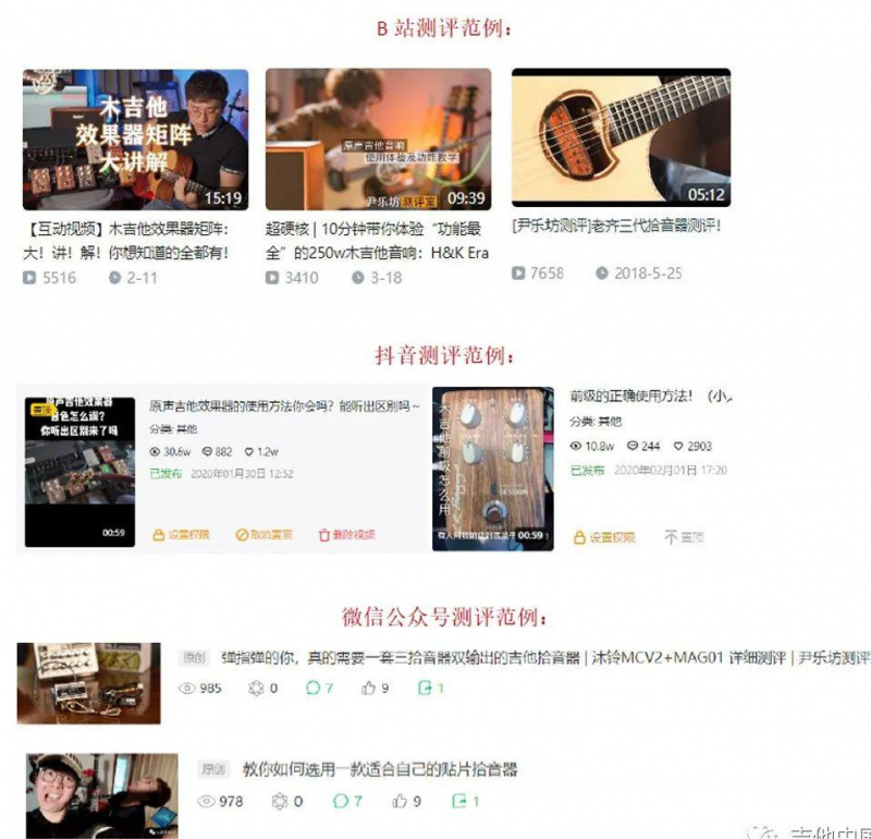 2020重大改革就是: 團結與聯合優秀的自媒體精英、個人、工作室,具有評測能力、具有一定知名度、具有一定粉絲量的自媒體精英將聯合締造成一個類似MCN機構,也類似吉他中國20年前最早實行的“經紀人”制度,與一些自媒體精英工作室簽約,利用吉他中國的品牌號召力和業內客戶的信任度,分發產品評測和推廣工作到自媒體精英,制作優秀內容,最後整合投放,實現最好的宣傳效果。